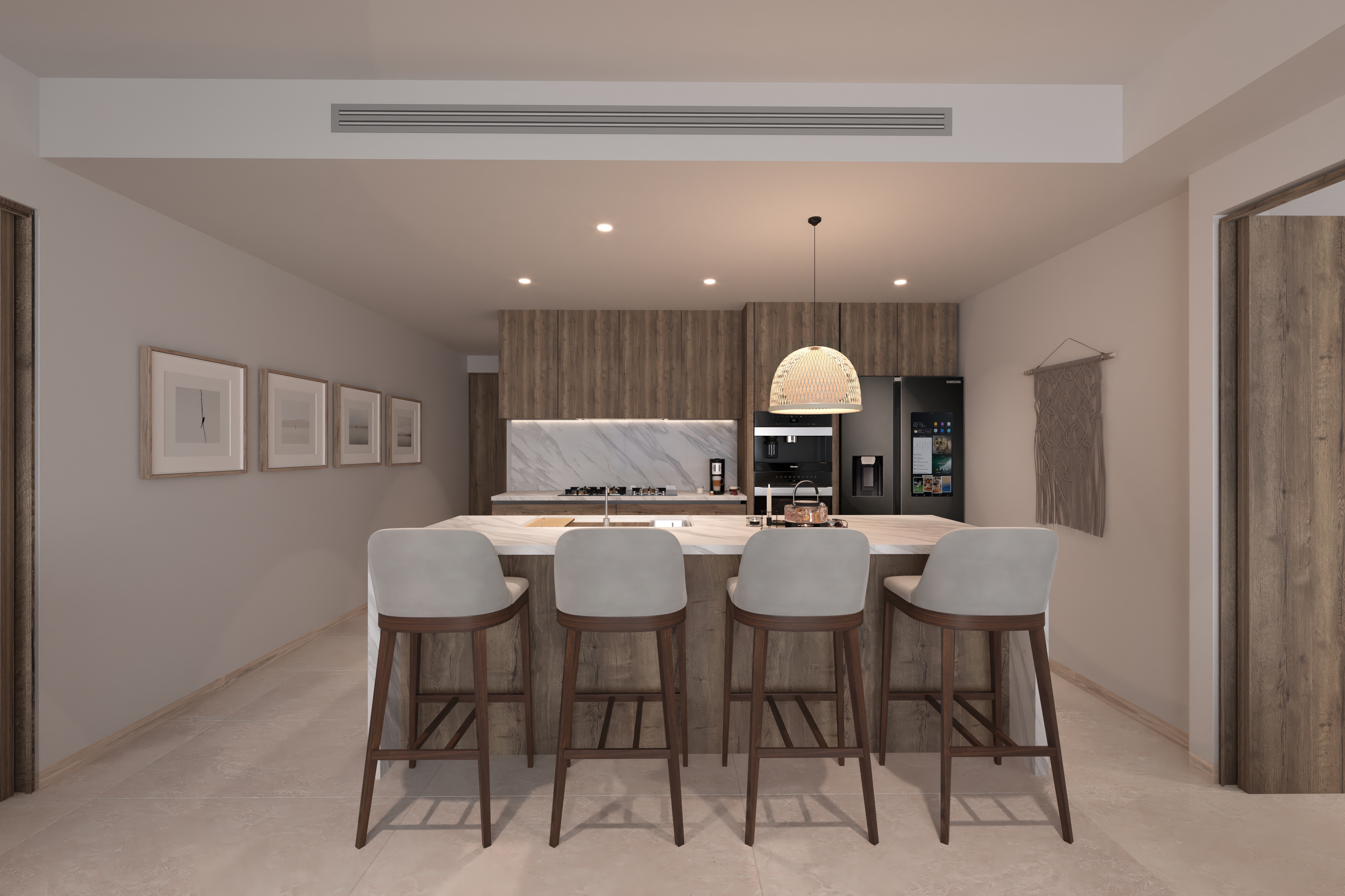 Each residence at AURA is designed with spaciousness and elegance, enveloped in a natural dialogue with the surroundings. Noble materials, luxurious finishes, and terraces that open up to uninterrupted views of the Sea of Cortez.